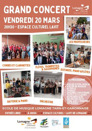 L'Ecole de Musique de la Lomagne Tarn et Garonnaise a le plaisir de vous inviter à son "GRAND CONCERT"