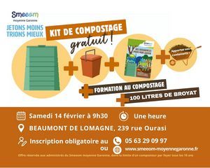 Session de distribution de composteurs du 14 février à 9h30, dans nos locaux à Beaumont-de-Lomagne