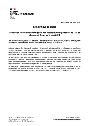 Le préfet de Tarn-et-Garonne communique