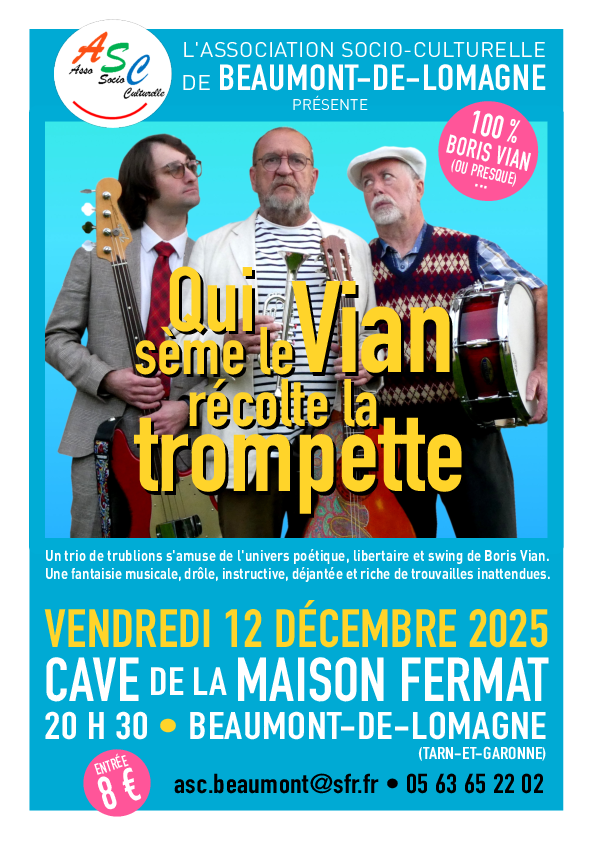 Nous vous invitons à notre concert afterwork qui aura lieu le vendredi 12 décembre 2025 à 20h30, à la cave de La Maison Fermat à Beaumont-de-Lomagne.