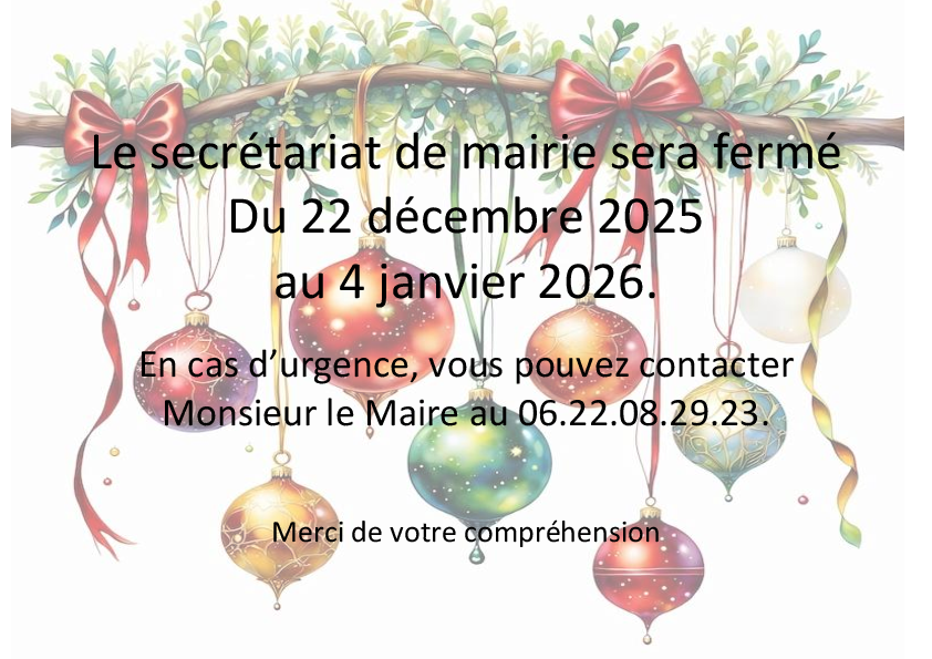 la Mairie de Gramont sera fermée du 22 décembre 2025 au 4 janvier 2026