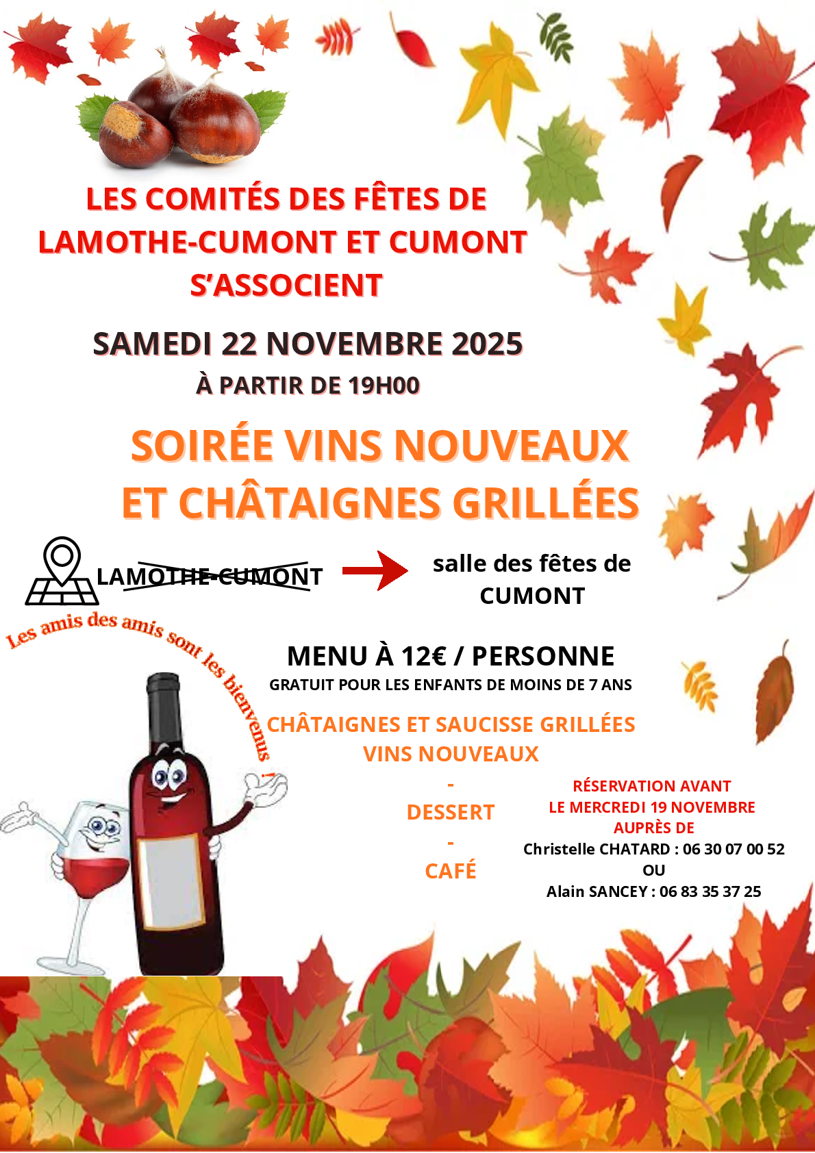 SAMEDI 22 NOVEMBRE 2025 A PARTIR DE 19H00 CUMONT
