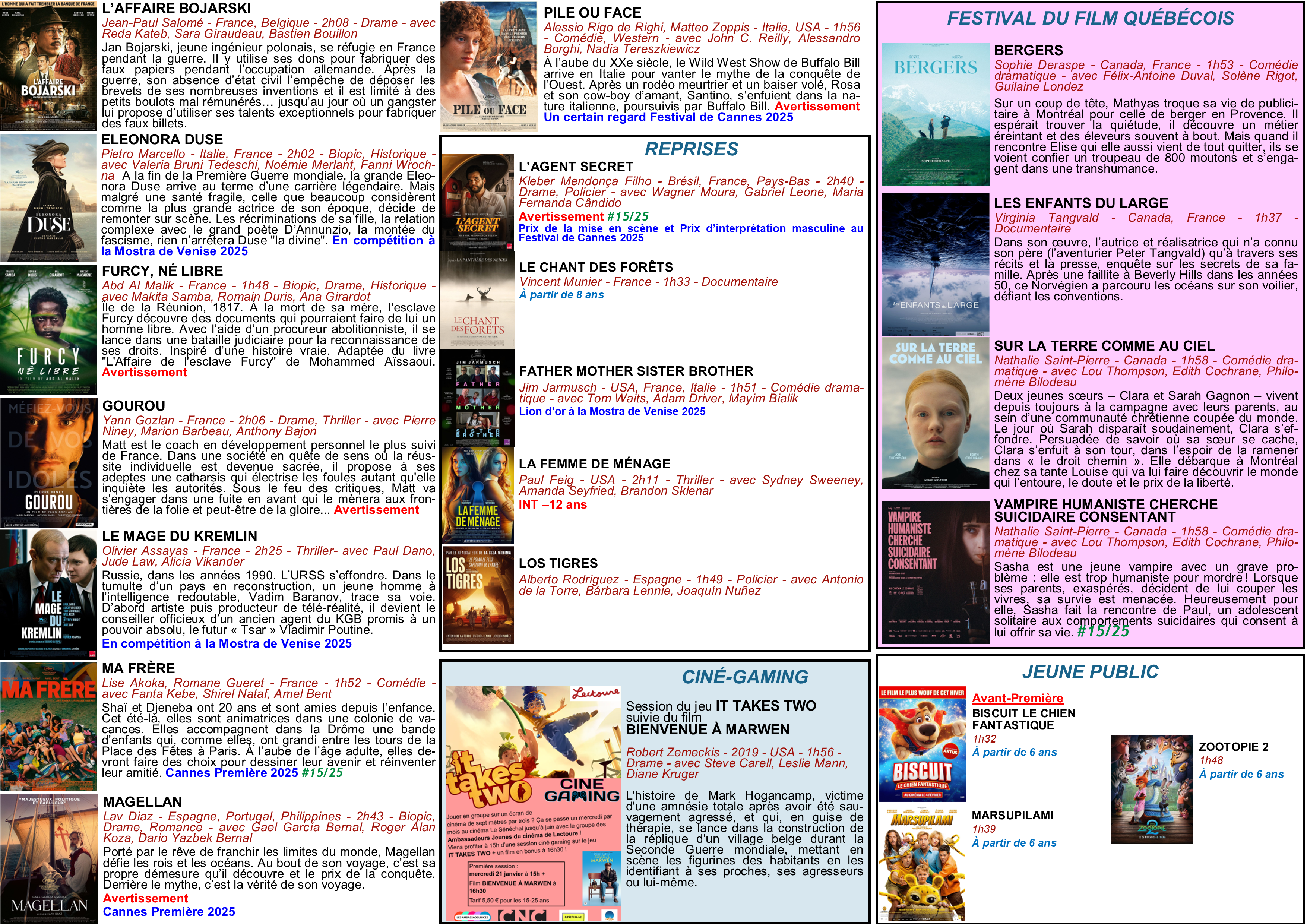 Programme cinéma Le Sénéchal LECTOURE du 21 janvier au 03 février 2026